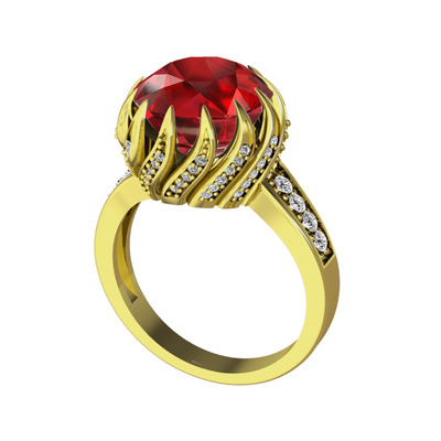 Garnet ve beyaz zirkon 18 ayar altın yüzük