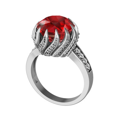 Garnet ve beyaz zirkon 925 ayar gümüş yüzük