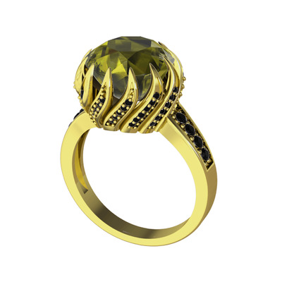 Peridot ve siyah zirkon 8 ayar altın yüzük