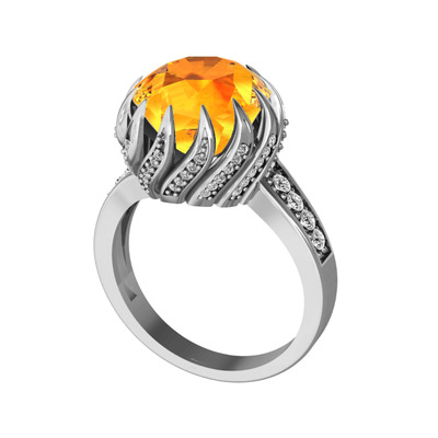 Sitrin ve beyaz zirkon 925 ayar gümüş yüzük
