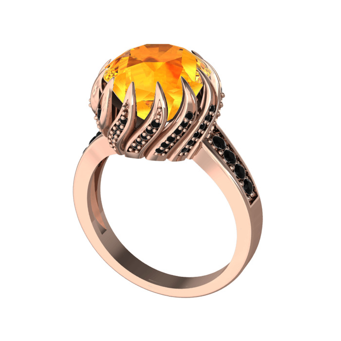 Sitrin ve siyah zirkon 8 ayar rose altın yüzük
