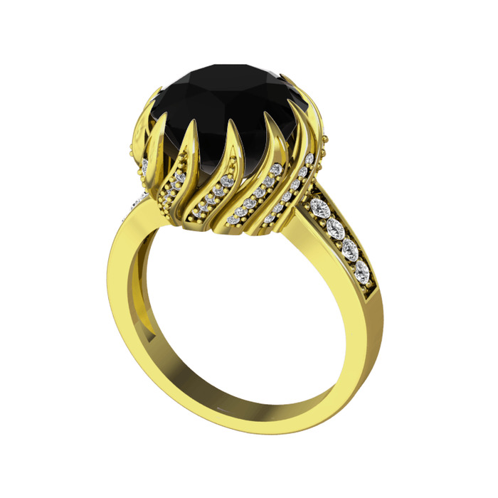 Siyah zirkon ve swarovski 18 ayar altın yüzük