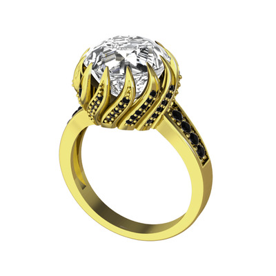 Swarovski ve siyah zirkon 925 ayar altın kaplama gümüş yüzük