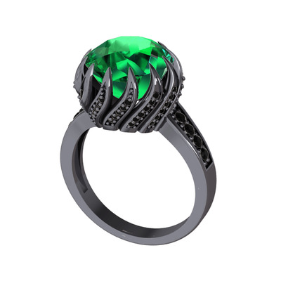 Yeşil kuvars ve siyah zirkon 925 ayar siyah rodyum kaplama gümüş yüzük