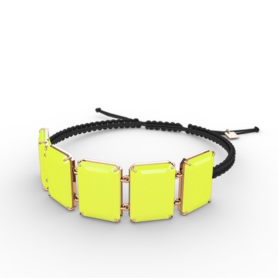 Neon sarı akrilik 925 ayar rose altın kaplama gümüş bileklik
