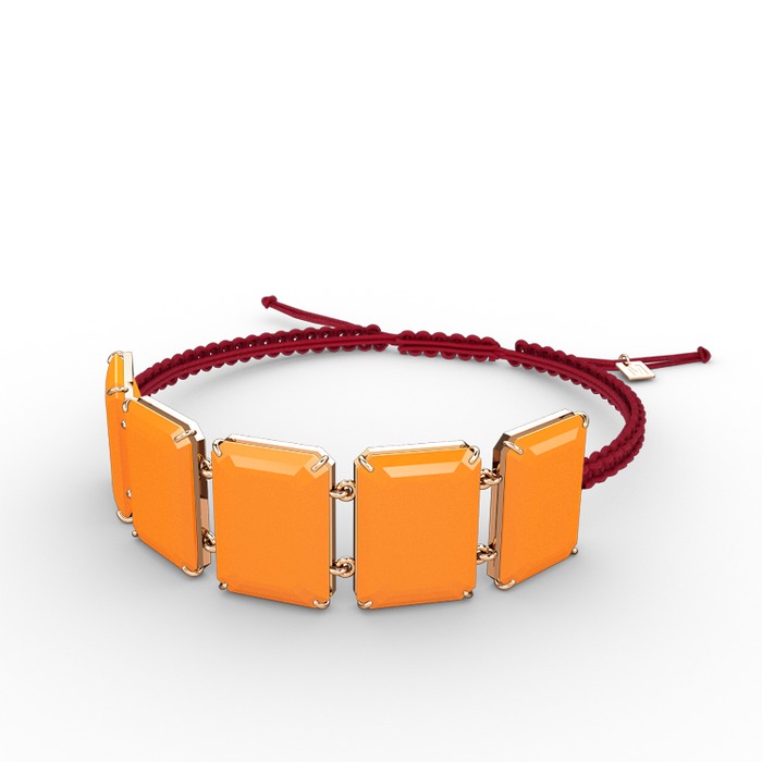 Neon turuncu akrilik 925 ayar rose altın kaplama gümüş bileklik