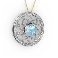 Akuamarin ve pırlanta 18 ayar beyaz altın kolye (0.036 karat, 40 cm rose altın rolo zincir)
