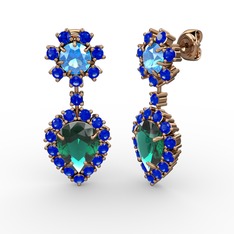 Lab safir, akuamarin ve rodolit garnet 18 ayar rose altın küpe