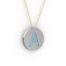 Akuamarin 18 ayar beyaz altın kolye (40 cm gümüş rolo zincir)