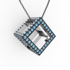 Akuamarin 18 ayar beyaz altın kolye (40 cm gümüş rolo zincir)