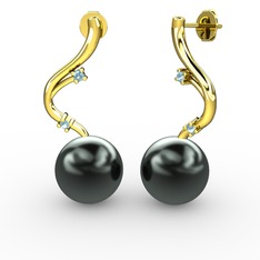 Siyah zirkon ve akuamarin 925 ayar siyah rodyum kaplama gümüş küpe