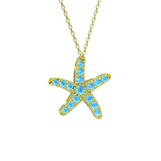 Akuamarin 925 ayar altın kaplama gümüş kolye (40 cm gümüş rolo zincir)