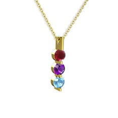 Akuamarin, kök yakut ve garnet 18 ayar altın yüzük