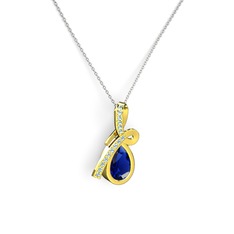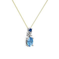 Lab safir ve akuamarin 8 ayar rose altın kolye (40 cm beyaz altın rolo zincir)
