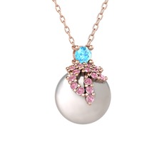 Pembe kuvars, akuamarin ve pembe inci 8 ayar altın kolye (40 cm gümüş rolo zincir)