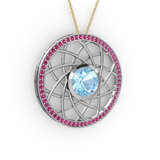 Akuamarin 18 ayar rose altın kolye (40 cm beyaz altın rolo zincir)