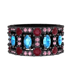 Rodolit garnet ve akuamarin 925 ayar siyah rodyum kaplama gümüş yüzük