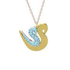 Akuamarin 925 ayar rose altın kaplama gümüş kolye (40 cm altın rolo zincir)