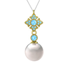 Akuamarin 18 ayar altın kolye (40 cm gümüş rolo zincir)
