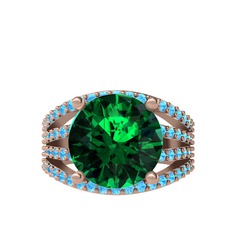Yeşil kuvars ve akuamarin 14 ayar rose altın yüzük