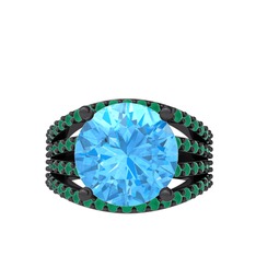 Akuamarin ve yeşil kuvars 925 ayar siyah rodyum kaplama gümüş yüzük