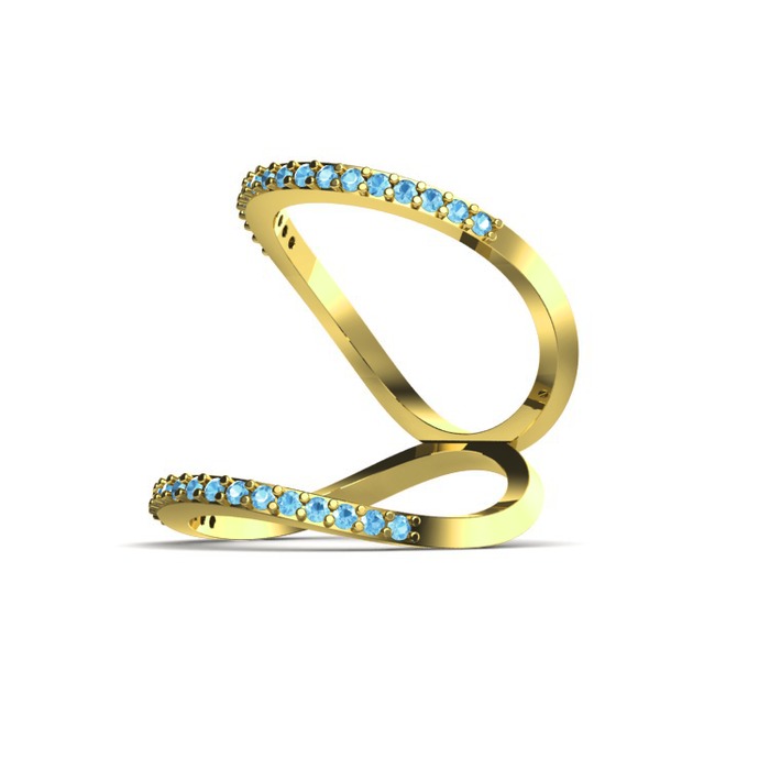 Akuamarin 925 ayar altın kaplama gümüş yüzük