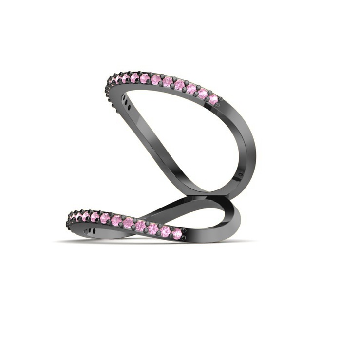 Pembe kuvars 925 ayar siyah rodyum kaplama gümüş yüzük