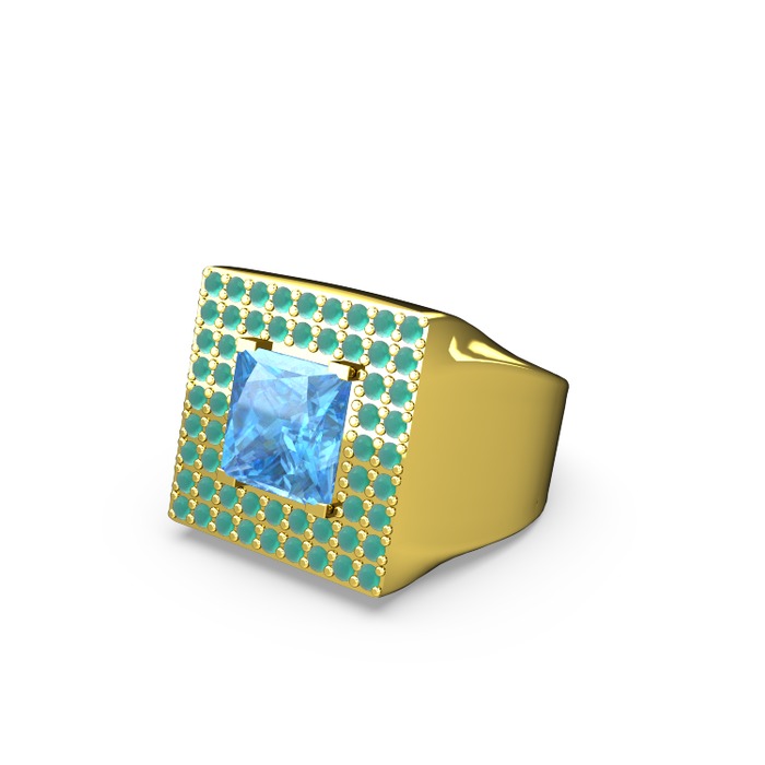 Akuamarin ve kök zümrüt 8 ayar altın yüzük
