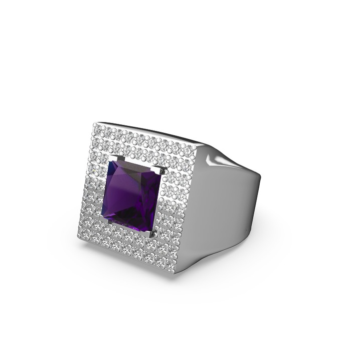 Ametist ve beyaz zirkon 925 ayar gümüş yüzük