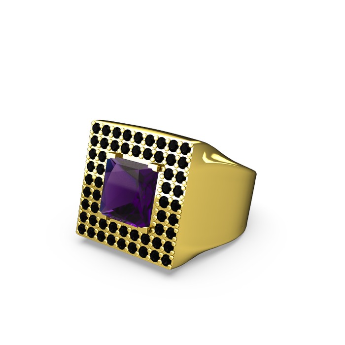 Ametist ve siyah zirkon 8 ayar altın yüzük