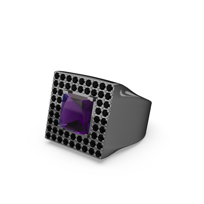 Ametist ve siyah zirkon 925 ayar siyah rodyum kaplama gümüş yüzük