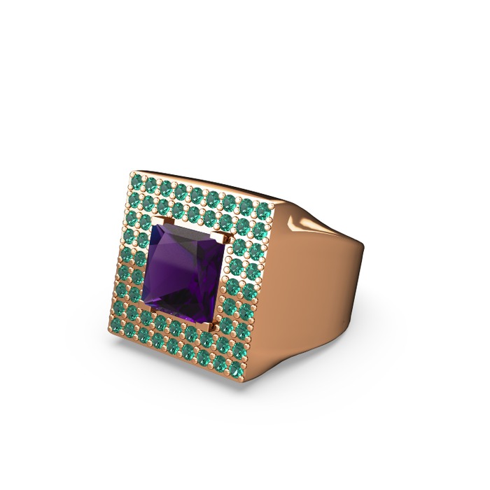 Ametist ve yeşil kuvars 14 ayar rose altın yüzük