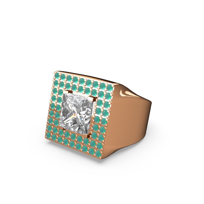 Beyaz zirkon ve kök zümrüt 14 ayar rose altın yüzük