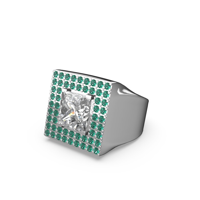 Beyaz zirkon ve yeşil kuvars 18 ayar beyaz altın yüzük