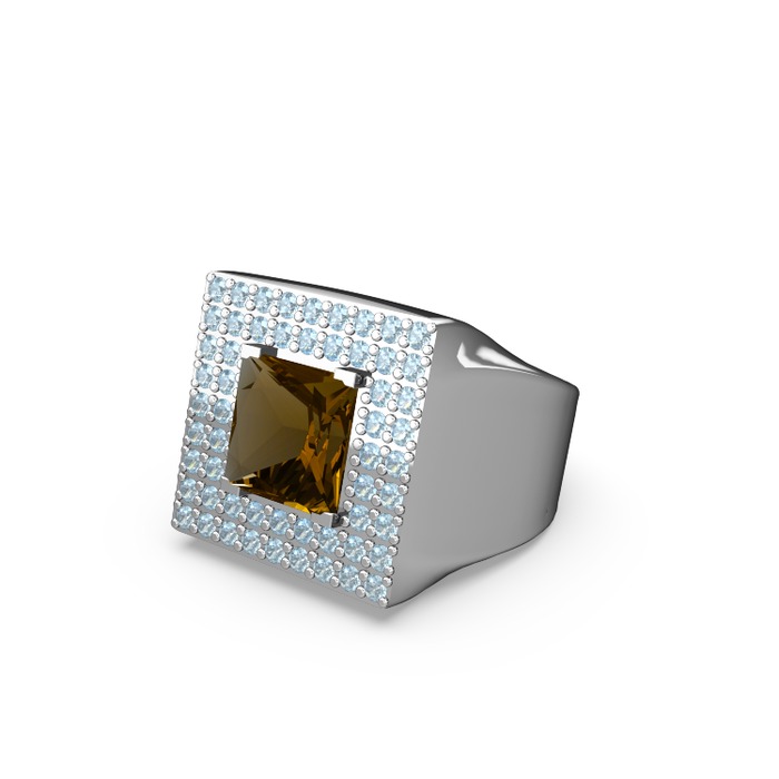 Dumanlı kuvars ve akuamarin 14 ayar beyaz altın yüzük