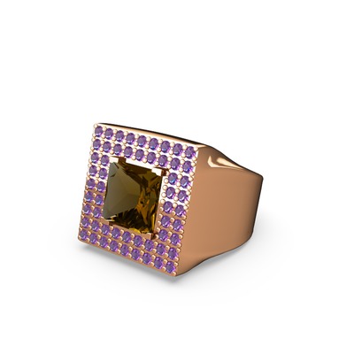 Dumanlı kuvars ve ametist 14 ayar rose altın yüzük