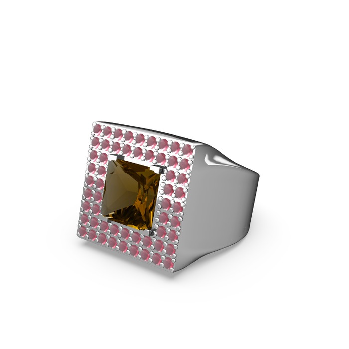 Dumanlı kuvars ve kök yakut 8 ayar beyaz altın yüzük