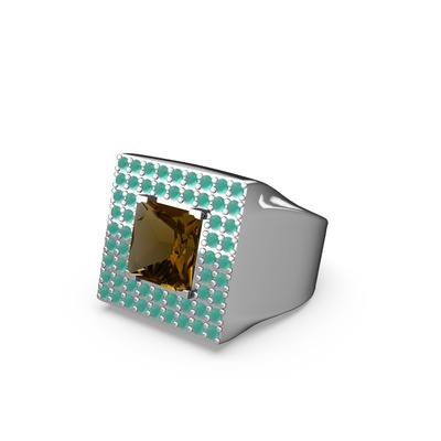 Dumanlı kuvars ve kök zümrüt 14 ayar beyaz altın yüzük