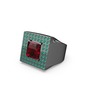 Garnet ve yeşil kuvars 925 ayar siyah rodyum kaplama gümüş yüzük