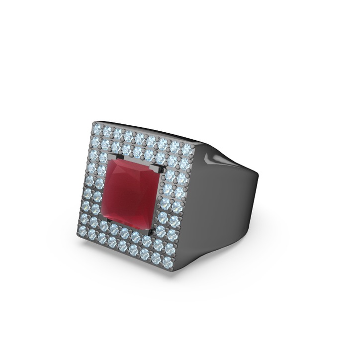 Kök yakut ve akuamarin 925 ayar siyah rodyum kaplama gümüş yüzük