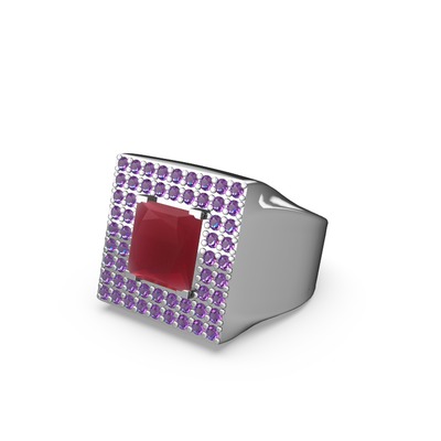 Kök yakut ve ametist 14 ayar beyaz altın yüzük