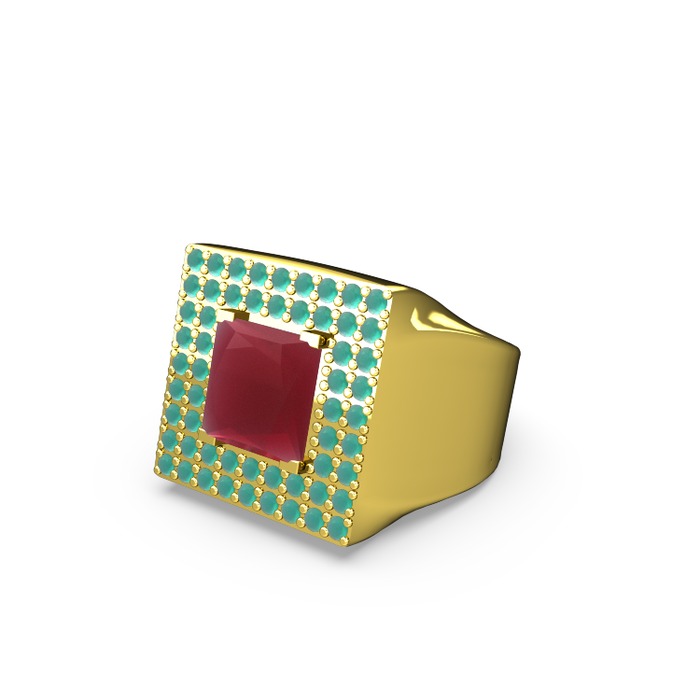 Kök yakut ve kök zümrüt 18 ayar altın yüzük