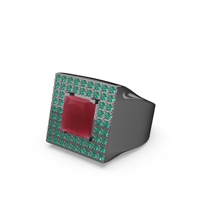 Kök yakut ve yeşil kuvars 925 ayar siyah rodyum kaplama gümüş yüzük