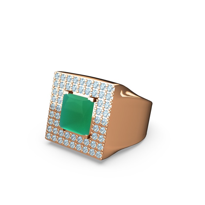 Kök zümrüt ve akuamarin 14 ayar rose altın yüzük