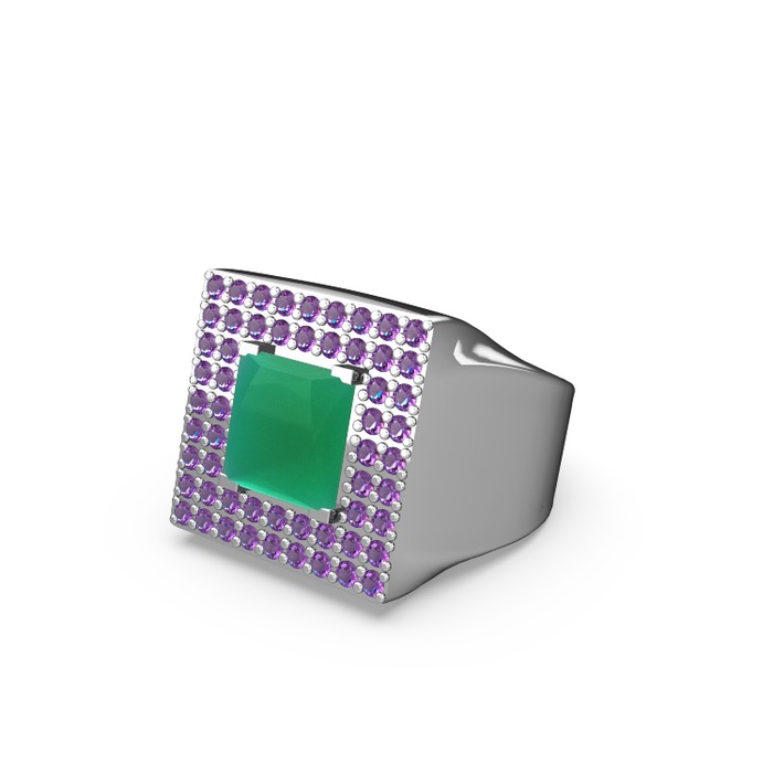 Kök zümrüt ve ametist 8 ayar beyaz altın yüzük