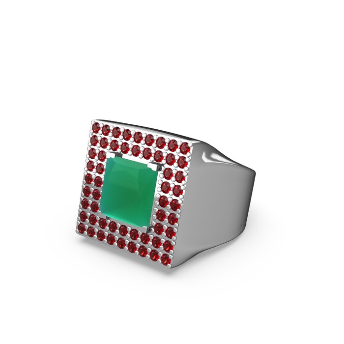 Kök zümrüt ve garnet 925 ayar gümüş yüzük