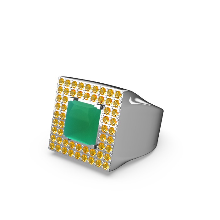 Kök zümrüt ve sitrin 14 ayar beyaz altın yüzük