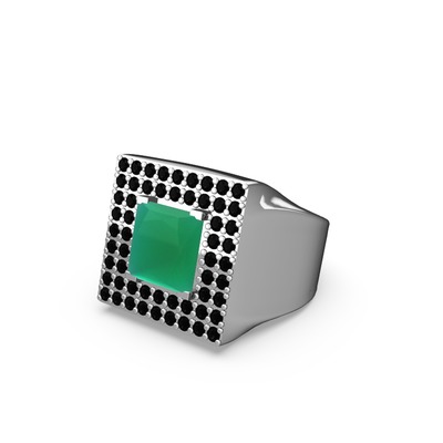 Kök zümrüt ve siyah zirkon 14 ayar beyaz altın yüzük