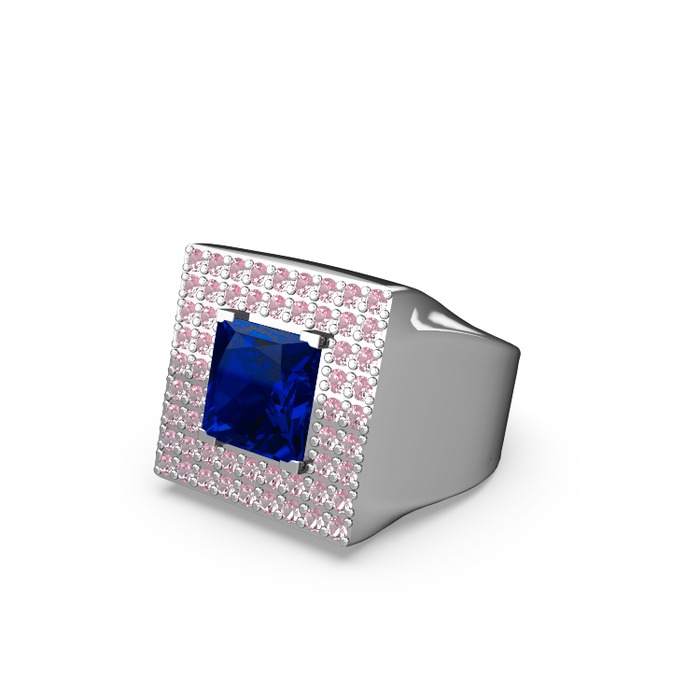 Lab safir ve pembe kuvars 18 ayar beyaz altın yüzük
