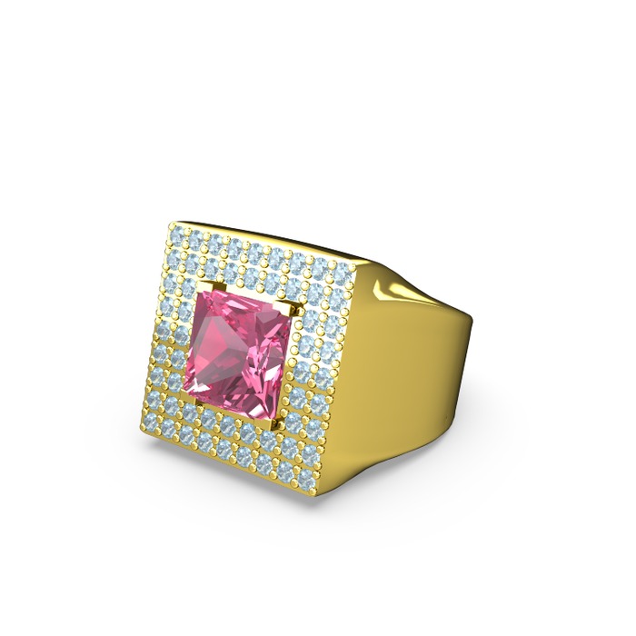 Pembe kuvars ve akuamarin 14 ayar altın yüzük